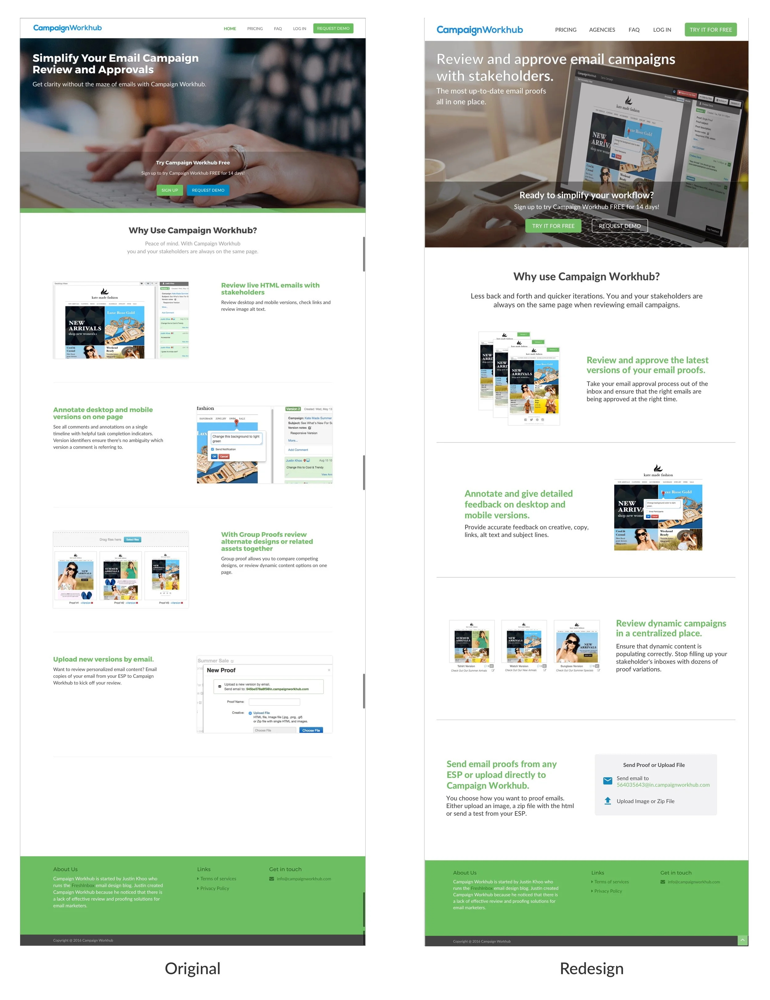 Problem: The founder of Campaign Workhub came to me to see if the current messaging on the homepage is resonating with potential leads. The homepage design had to remain the same, but I had the flexibility to update the copy and images.