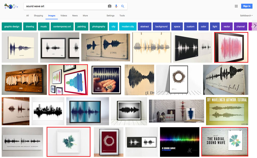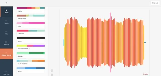 At the time of this redesign there were a few other companies making sound wave art, but none of them offered a DIY product like we did (Since then others have copied our approach). An example of this is Etsy where you work with an artist back and forth to create custom artwork. We wanted to let the user be the artist and believed this was how we were different in the market.